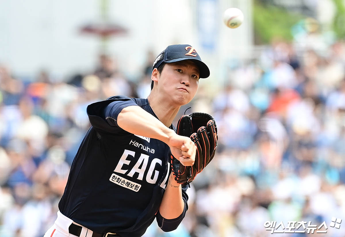 (엑스포츠뉴스 김유민 기자) 한화 이글스 투수 엄상백이 스프링캠프 첫 청백전 등판에서 아쉬운 모습을 보였다.