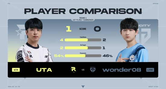 후반전 돌입 후 0의 균형을 꺤 선수는 UTA. 그는 선제골을 넣은 뒤 골문을 철통같이 지켰고, 전후반 1대0으로 경기를 마무리해 1라운드 1위에 올랐다.