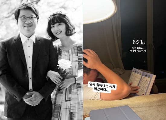 한유라는 11일 자신의 계정에 "6.23AM 밖이 캄캄... 왜 이래 여보 더 자. 일찍 일어나는 새가 피곤하다..."라는 글과 함께 한 장의 사진을 게재했다.