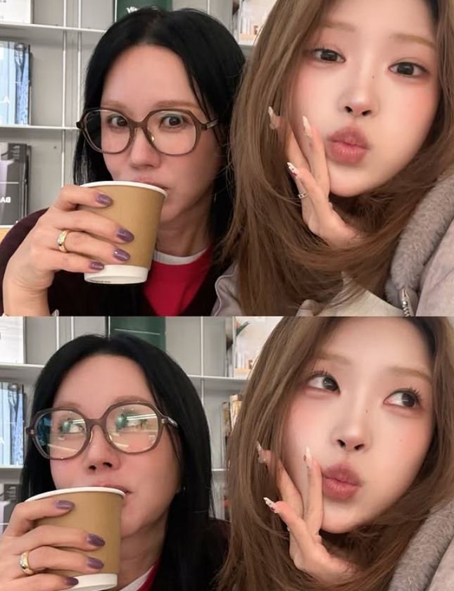 사진 속 최준희는 엄정화와 카페에서 셀카를 찍고 있다. 두 사람은 화려한 이목구비를 뽐내며 앙증 맞은 포즈를 선보였다.