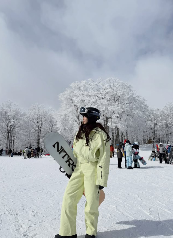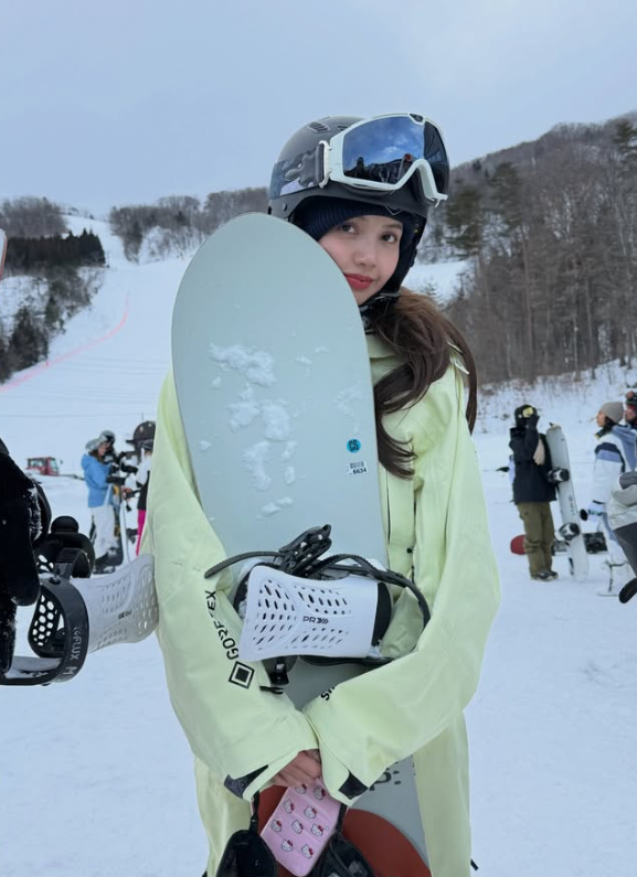 또 다른 사진에서는 식당에서 식사를 즐기며 카메라를 향해 장난기 어린 표정을 짓는 모습도 담겼다. 스노보드 후 여유로운 휴식을 즐기는 자연스러운 순간까지 공개하며 팬들에게 색다른 매력을 전했다.
