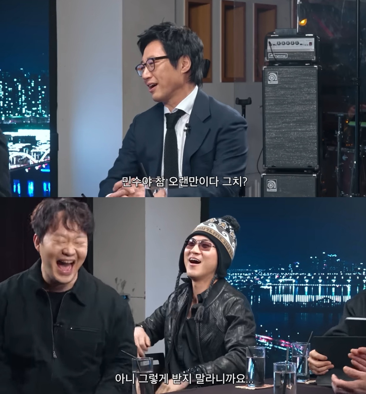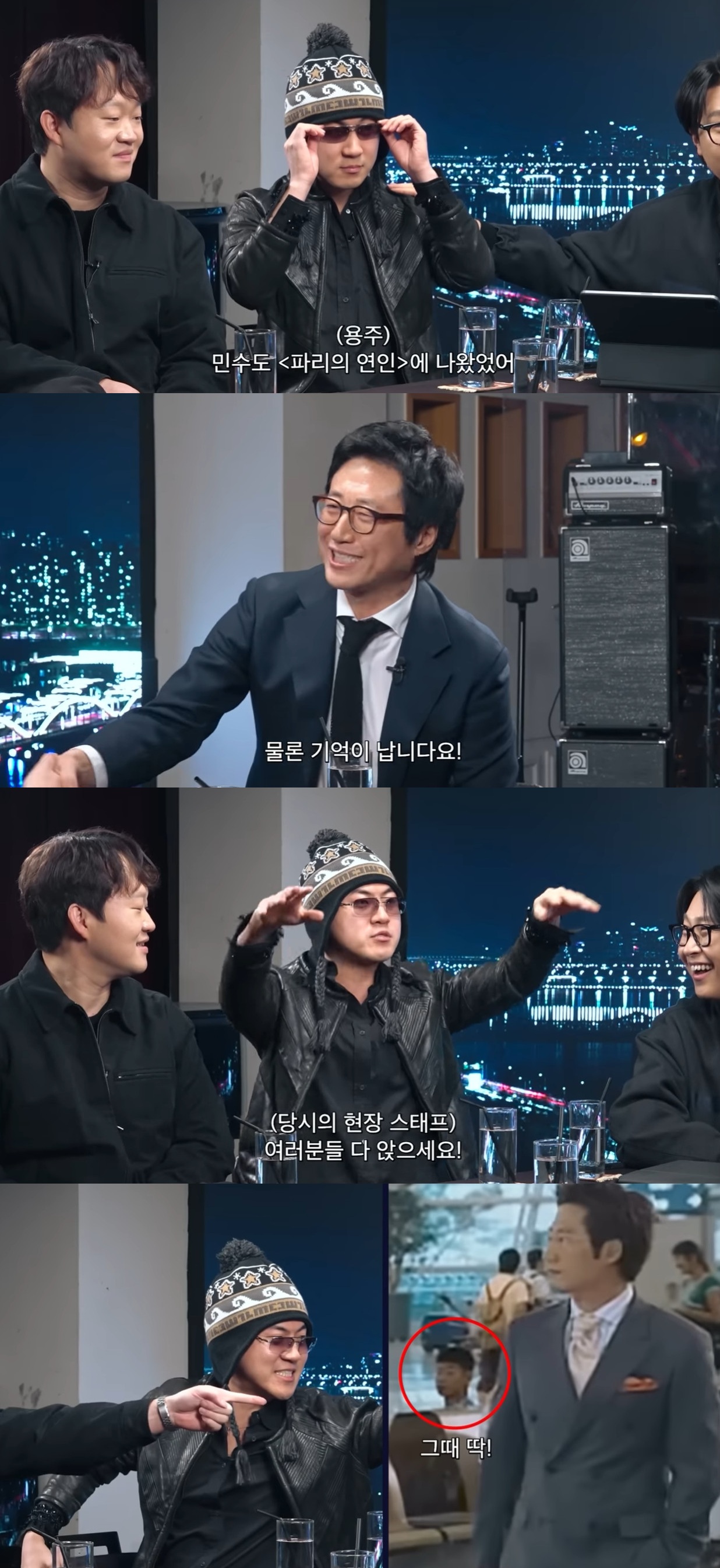 이날 게스트로 출연한 박신양에게 이용주는 "우리는 다 박신양의 작품들을 보며 자랐다. 대표작이 '파리의 연인' 아니냐. 근데 그거 아나. 김민수도 거기 나왔다"고 운을 뗐다.