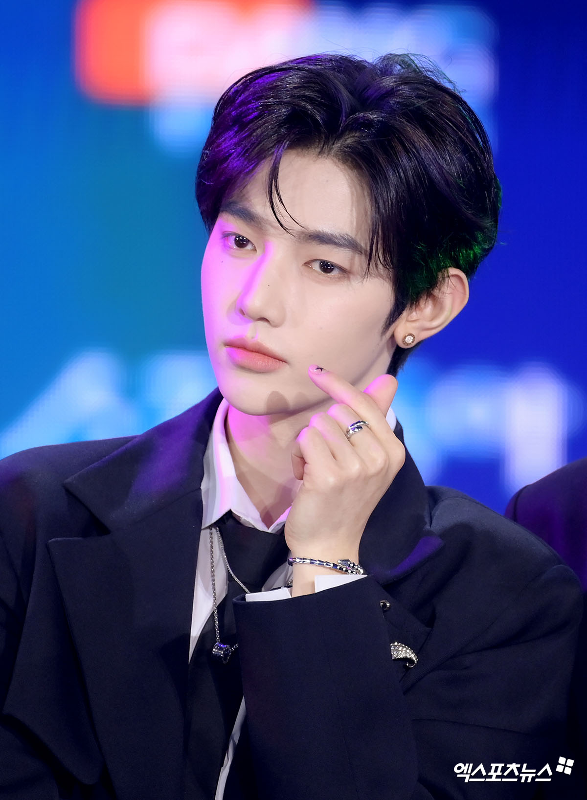 제로베이스원 장하오가 포토타임을 갖고 있다.