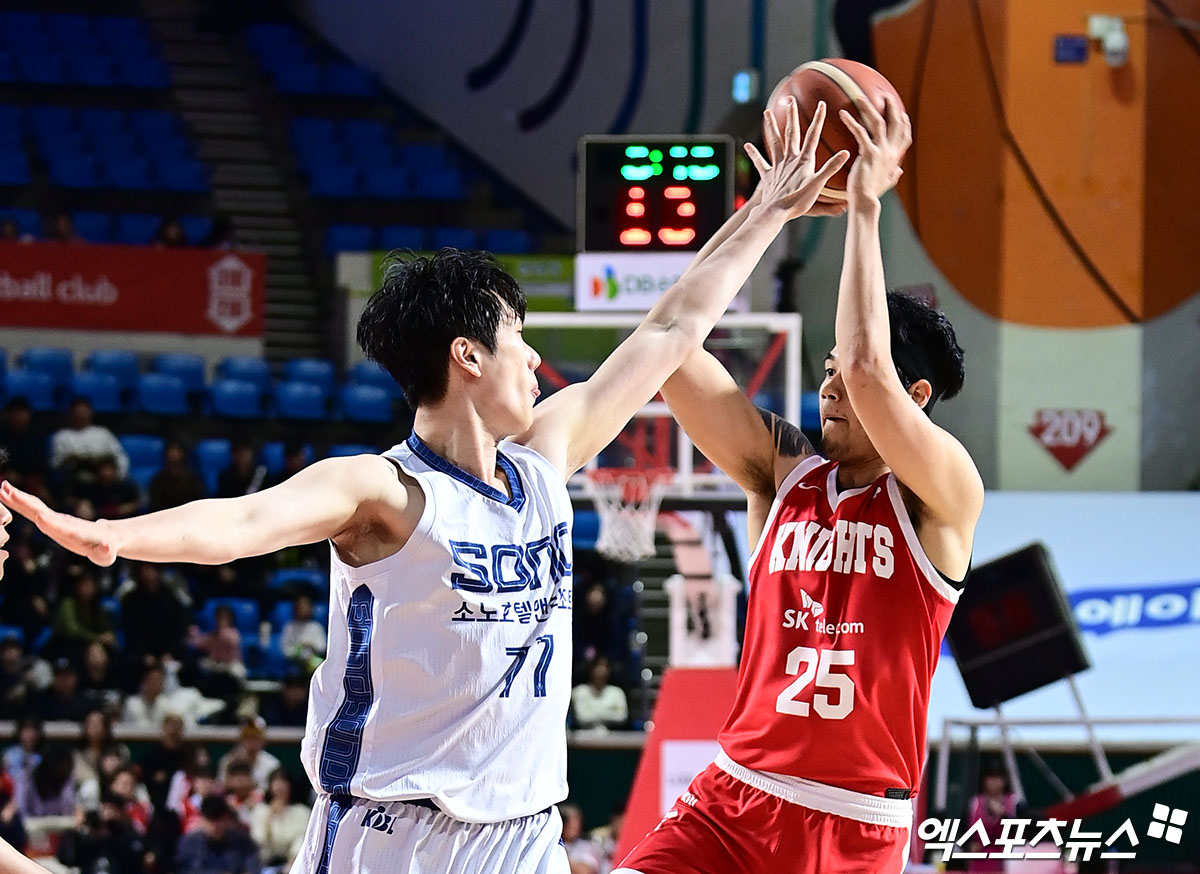 (엑스포츠뉴스 잠실, 박지영 기자) 11일 오후 서울 송파구 잠실학생체육관에서 열린 '2025-2026 LG전자 프로농구' 서울 SK와 고양 소노의 경기, SK 알빈 톨렌티노가 슛을 시도하고 있다.