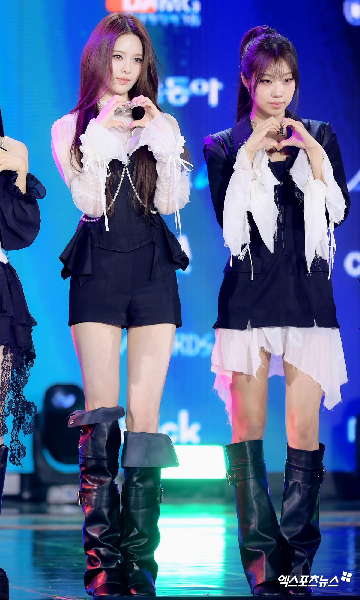 이날 방지민은 블랙 앤 화이트 대비가 돋보이는 스타일링으로 시선을 단번에 사로잡았다. 시스루 러플 블라우스와 블랙 베스트, 쇼츠의 조합은 시크함과 사랑스러움을 동시에 담아냈다. 여기에 무릎을 덮는 블랙 롱부츠를 매치해 다리 라인을 더욱 강조, 완벽한 비율을 극대화했다.
