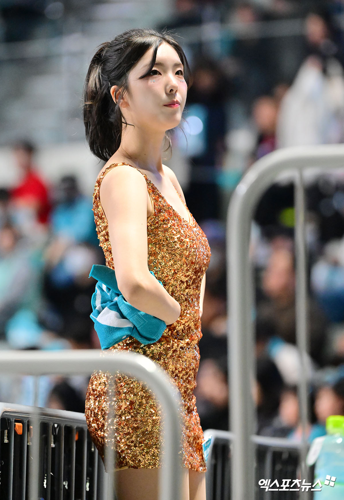 (엑스포츠뉴스 장충, 김한준 기자) 11일 오후 서울 장충체육관에서 열린 '진에어 2025-2026 V-리그' GS칼텍스와 페퍼저축은행의 경기, 김인영 치어리더가 열띤 응원을 선보이고 있다.