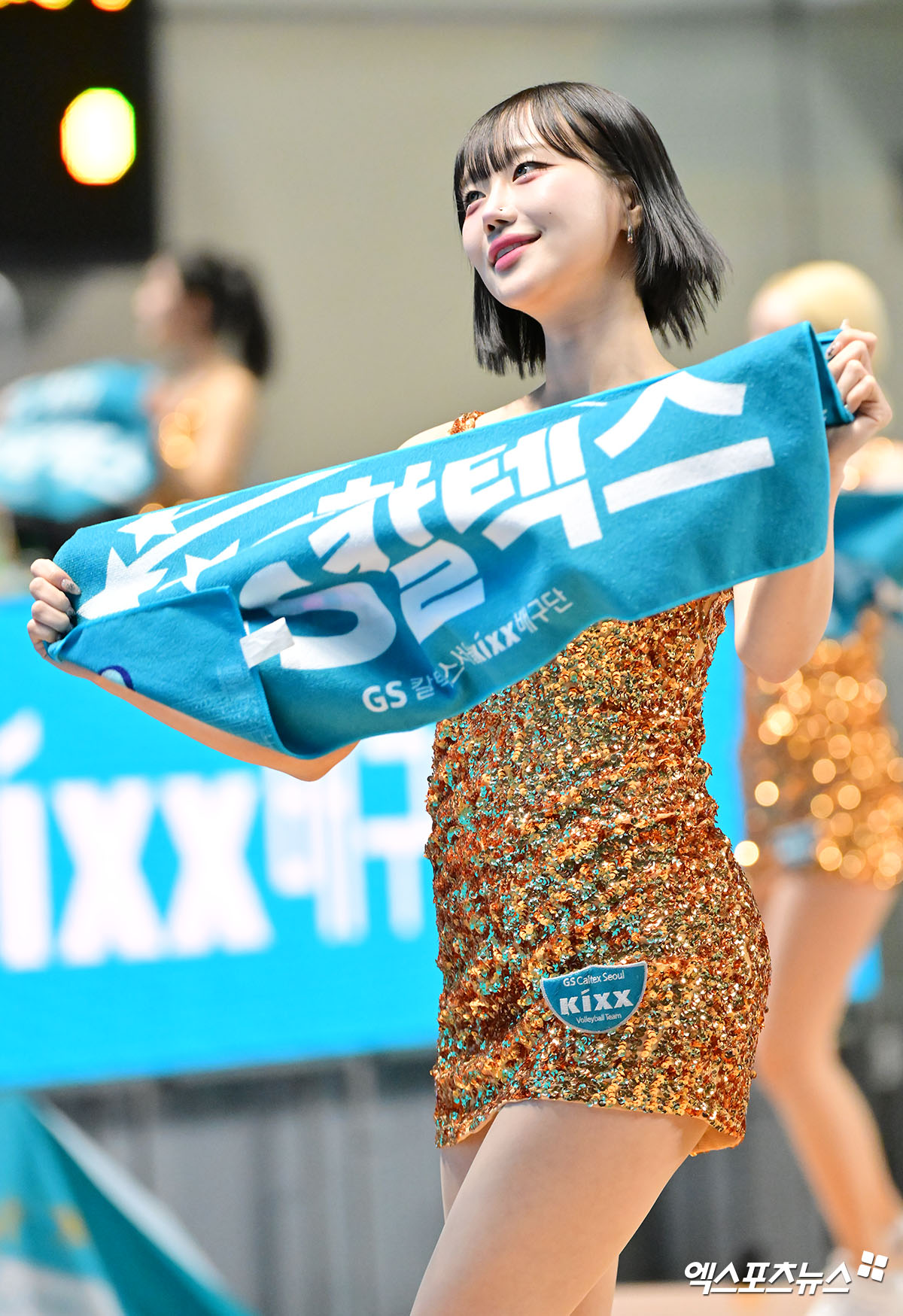 (엑스포츠뉴스 장충, 김한준 기자) 11일 오후 서울 장충체육관에서 열린 '진에어 2025-2026 V-리그' GS칼텍스와 페퍼저축은행의 경기, 백지혜 치어리더가 열띤 응원을 선보이고 있다.