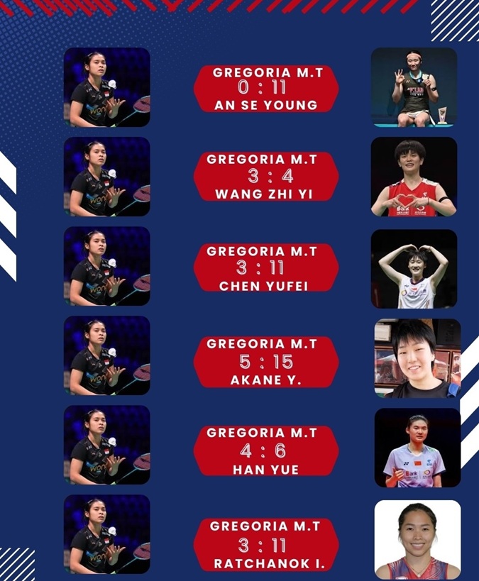 전성기 시절 세계 5위까지 올랐던 2024 파리 올림픽 동메달리스트 그레고리아 툰중도 안세영과 11번이나 붙었지만 한 차례도 못 이겼다.