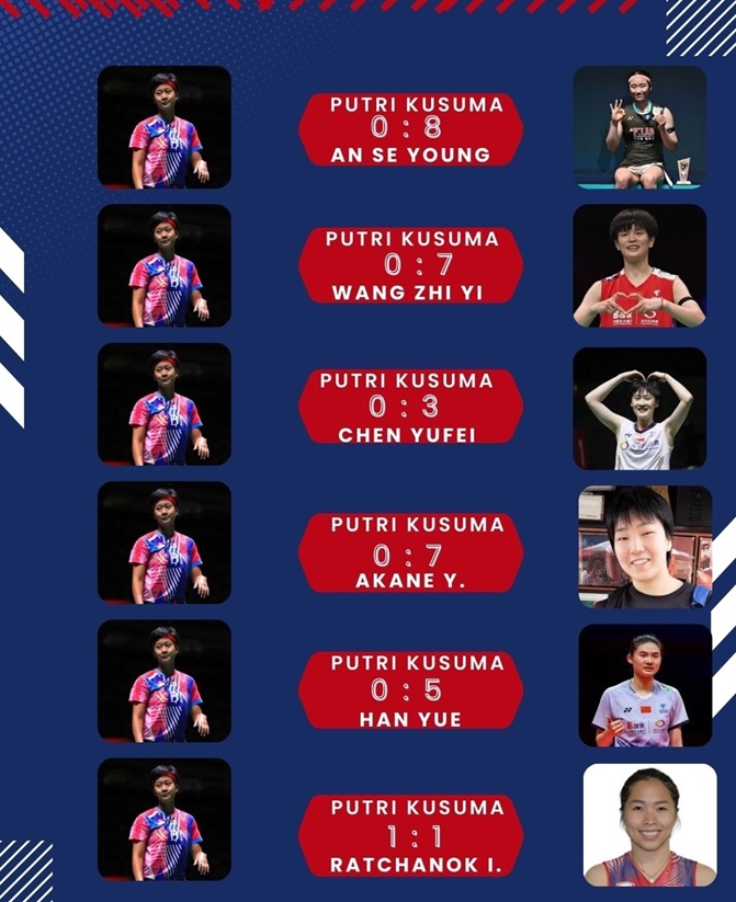 배드민턴 전문매체 '볼라롭'은 11일 인도네시아 여자 단식 1, 2위 푸트리 쿠수마 와르다니(세계 6위)와 그레고리아 툰중(세계 33위)이 세계 상위 랭커과의 맞대결을 거둔 성적을 공개했다.