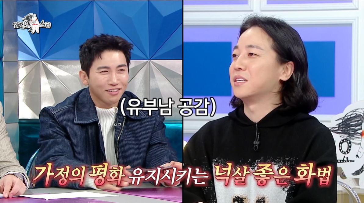 이와 함께 넉살은 "교대로 하는 데도 저도 예민해서 따로 자는 데도 (소리를 듣고) 깬다. 괜히 화장실 가다가 '여보 고생이 많다' 이러고. '듣고 있어, 미안해 여보' 이렇게라도 하고 있다"며 육아 '꿀팁'을 전했고, 김구라는 "할 얘기 많네. 뭘 없다고 그러냐"라고 지적해 웃음을 자아냈다.