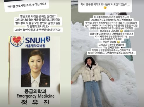 먼저 영숙은 "한의원 간호사면 간호조무사 아니냐"는 질문에 "방송에서 거짓말을 하진 않겠죠?"라고 반문하며, 서울대학교병원에서 간호사로 재직하던 당시의 사원증을 공개했다. 이어 "'나는 SOLO' 출연자들은 졸업증명서, 재직증명서, 범죄경력 사실 등 본인이 말한 것들을 모두 증명하고 출연한다"며 "그래서 출연자들에 대한 믿음이 더 갔다"고 덧붙였다.