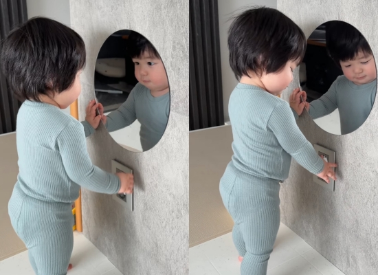 한편 하루 군은 손가락을 거울 밑에 위치한 콘센트 구멍에 가져다 대는 모습으로 아찔한 상황을 연출하기도 했다.