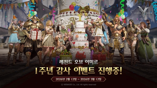 12일 ㈜위메이드(대표 박관호)는 MMORPG '레전드 오브 이미르(Legend of YMIR)'의 서비스 1주년을 맞아 대규모 이벤트와 시즌4 '풍요' 업데이트를 선보였다고 밝혔다.