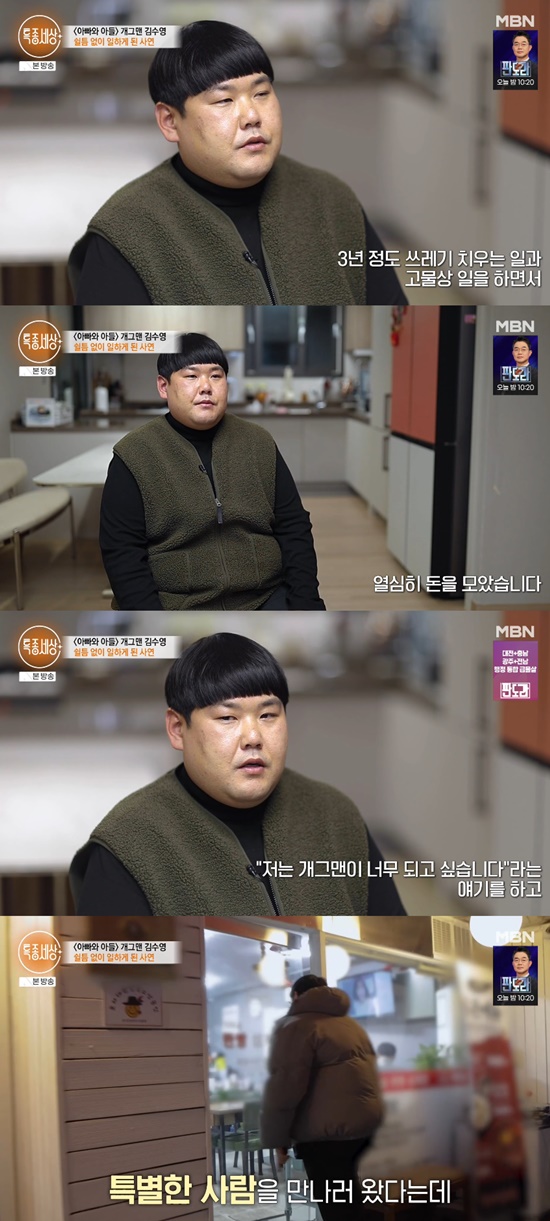 이어 “19살부터 쓰레기 치우는 일을 했다. 그게 끝나면 고물상을 했다. 3년 정도 일을 하며 열심히 돈을 모았고, 그걸 부모님께 한 푼도 안 쓰고 드렸다”며 “개그맨이 되고 싶다고 해서 5만 원을 들고 서울로 올라왔다”고 회상했다.