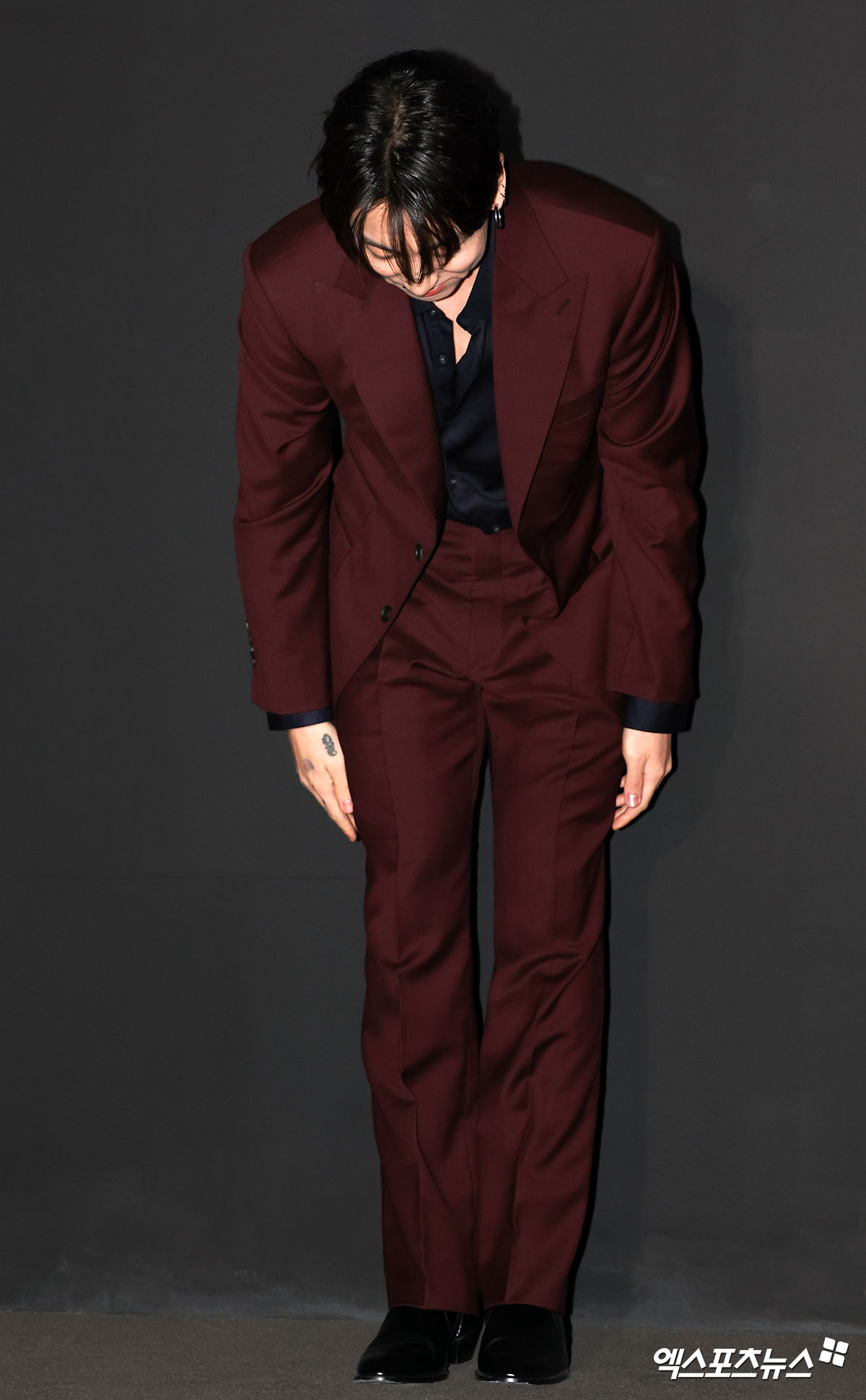 이날 행사에 참석한 방탄소년단(BTS) 정국이 포즈를 취하고 있다.