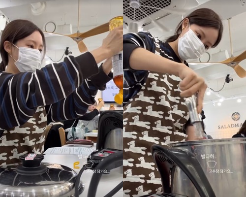 마스크를 착용한 채 진지한 표정으로 재료를 계량하고, 꼼꼼하게 섞는 모습에서는 색다른 매력이 드러났다. 무대 위 화려한 모습과는 또 다른 ‘생활 고수’ 면모가 팬들의 관심을 모으고 있다.