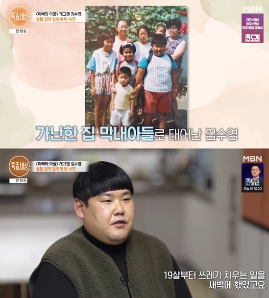 “19살부터 쓰레기 치우는 일을 했다. 그게 끝나면 고물상을 했다. 3년 정도 일을 하며 열심히 돈을 모았고, 그걸 부모님께 한 푼도 안 쓰고 드렸다”는 그는 “개그맨이 되고 싶다고 해서 5만 원을 들고 서울로 올라왔다”고 과거를 회상했다.