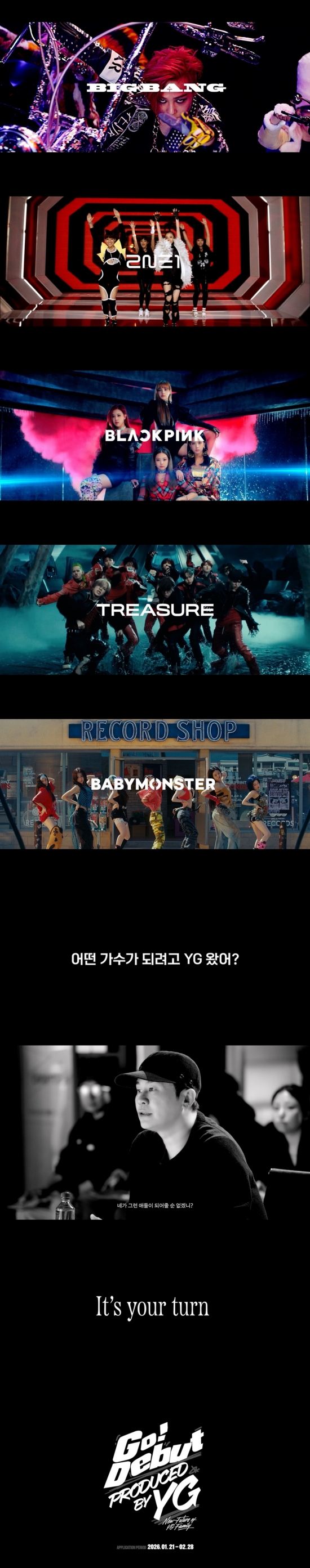 (엑스포츠뉴스 황수연 기자) YG엔터테인먼트가 '2026 YG SPECIAL AUDITION : GO! DEBUT' 티저를 13일 추가 공개하며 글로벌 원석 발굴 프로젝트의 열기를 한층 끌어올렸다.