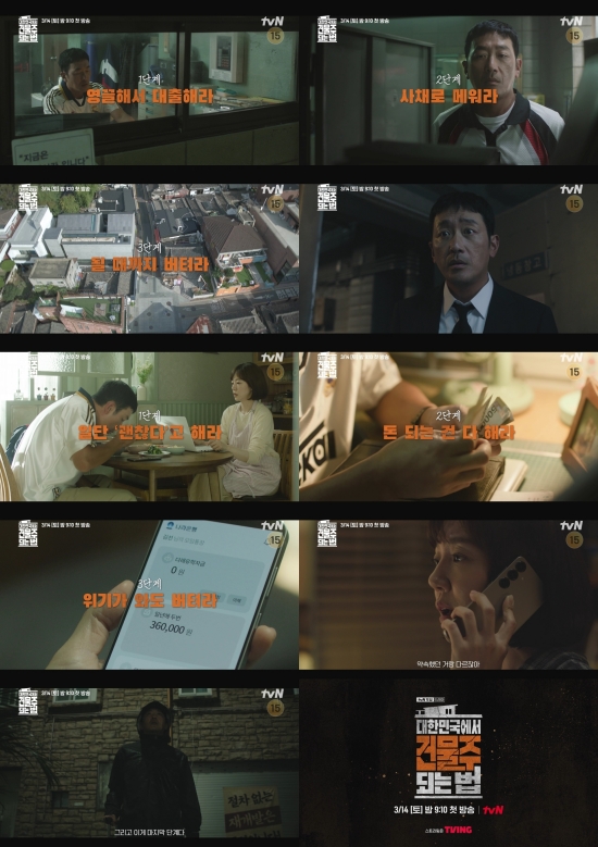 건물주이자 가장 하정우의 사투가 펼쳐질 tvN 새 토일드라마 ‘대한민국에서 건물주 되는 법’은 3월 14일 토요일 오후 9시 10분 첫 방송된다.