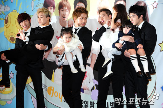 [엑스포츠뉴스 = 권태완 기자] 16일 오후 서울 역삼동 강남 노보텔 호텔에서 열린 KBS JOY '엠블랙의 헬로 베이비' 제작발표회에서 엠블랙 천둥, 승호, 지오가 아이들은 안고 포즈를 취하자 이준이 미르를 아이처럼 안고 포즈를 취해 좌중에 웃음이 터졌다.