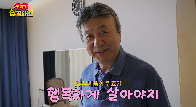 제작진은 "부부 싸움 하시면 각방 쓰시냐"며 개구진 질문을 건넸고, 박영규는 "부부 싸움 안 한다. 부부 싸움을 왜 하냐, 행복하게 살아야지"라며 황당해했다.