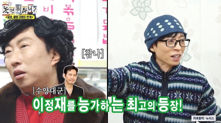 지난 14일 방송된 설 특집 MBC 예능프로그램 ‘놀면 뭐하니?’는 유재석(폐오르간), 하하(늙은 섞박지), 허경환(잔땀), 주우재(이윤석), 정준하(강남역 변우석), 신입 회원 박명수와 함께한 ‘쉼표, 클럽 강원도 번개’ 편으로 꾸며졌다.