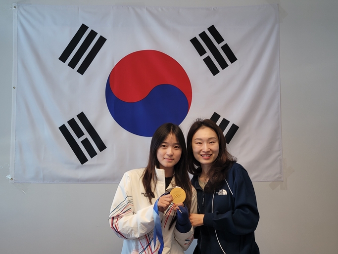 (엑스포츠뉴스 이탈리아 밀라노, 권동환 기자) 한국 스노보드 여자 하프파이프 금메달리스트 최가온(세화여고)이 여자 쇼트트랙 간판 최민정(성남시청)과 만나 금빛 기운을 전달했다.