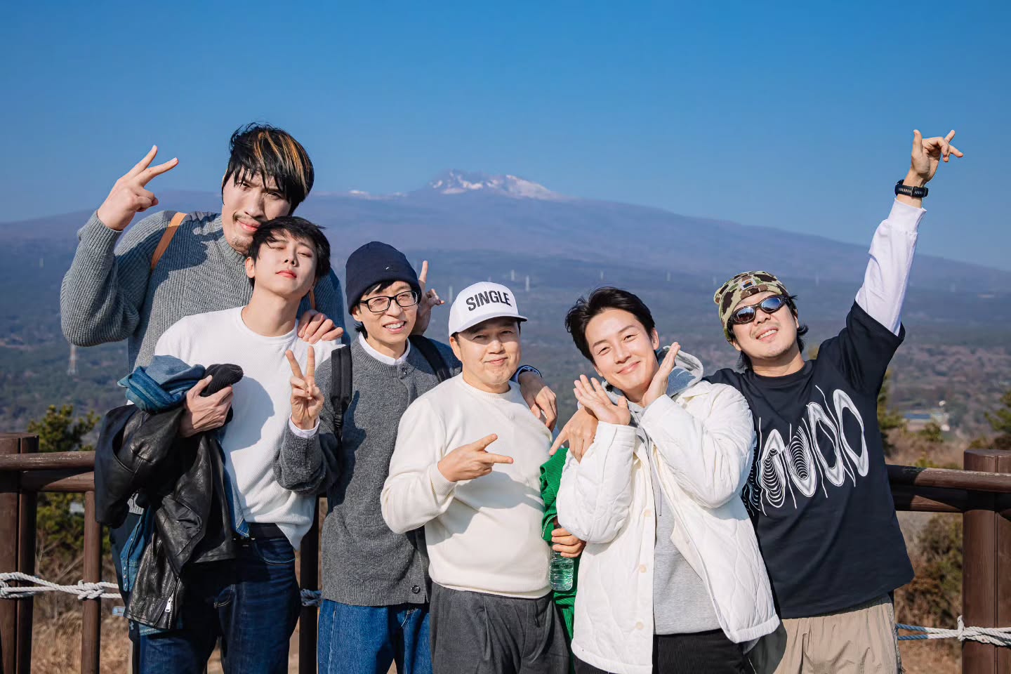 사진 속에는 MBC '놀면 뭐하니?'를 함께하는 최홍만, 주우재, 유재석, 김광규, 허경환, 하하가 산 위에서 기념사진을 찍고 있는 모습이 담겼다. 마치 한 가족 같은 여섯 사람의 화기애애한 분위기가 훈훈함을 자아낸다.