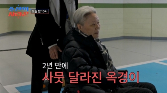 하지만, 영상 속 옥경이는 2년 전과 다르게 휠체어를 타고 등장해 충격을 자아냈다. 최성국은 "(옥경이 님이) 이제 휠체어를 타고 다니신다"면서 화들짝 놀랐다. 황보라도 "그때만 해도 휠체어 타지 않으셨다. 손 잡고 걸어 다니셨는데..."라며 부쩍 기운이 없어진 옥경이의 모습에 안타까움을 드러냈다.