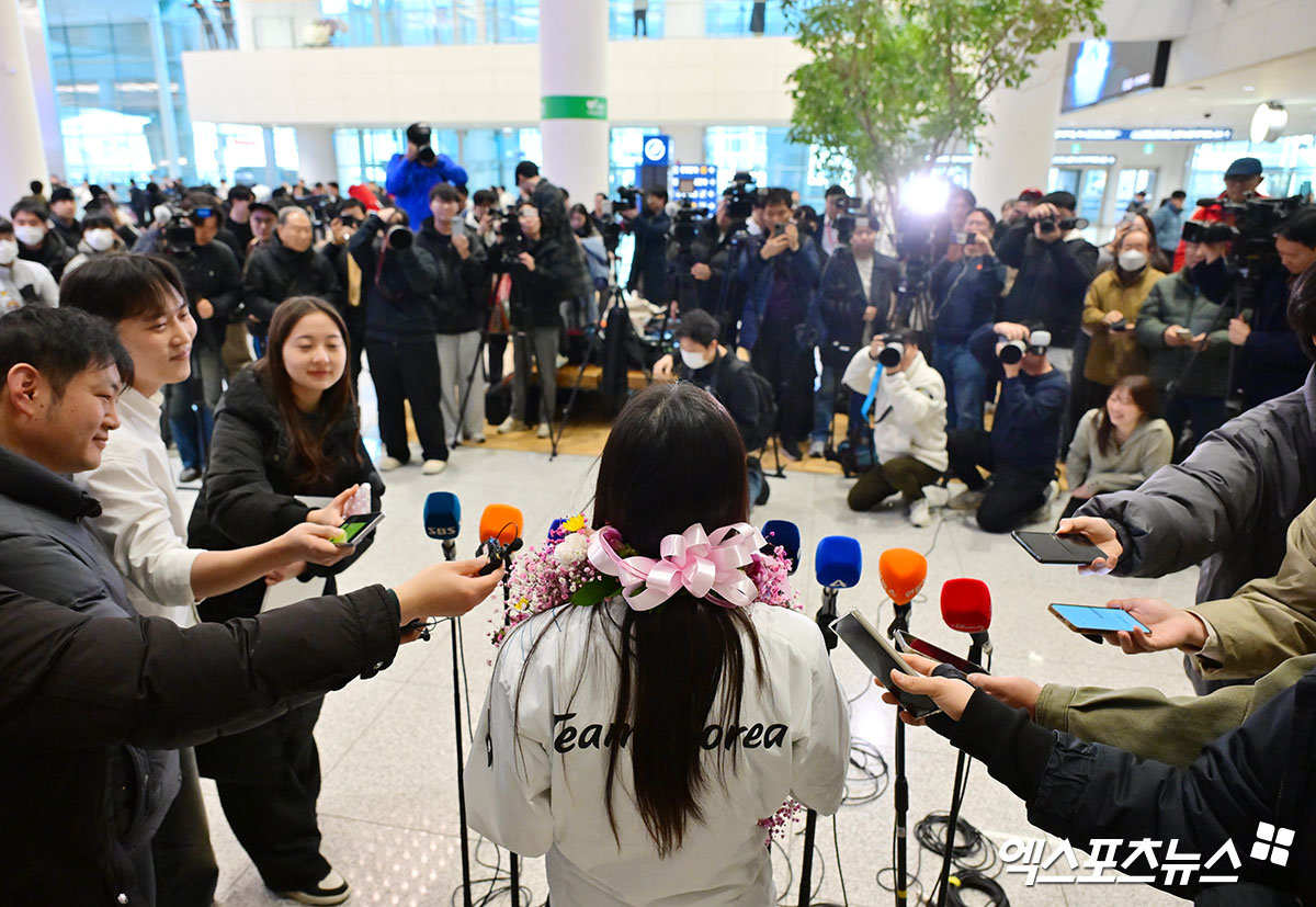 (엑스포츠뉴스 인천공항, 김한준 기자) 2026 밀라노·코르티나담페초 동계 올림픽 스노보드 여자 하프파이프 결승에서 90.25점을 받아 한국 설상 종목 첫 올림픽 금메달을 따낸 최가온(세화여고)이 16일 오후 인천국제공항을 통해 귀국했다.