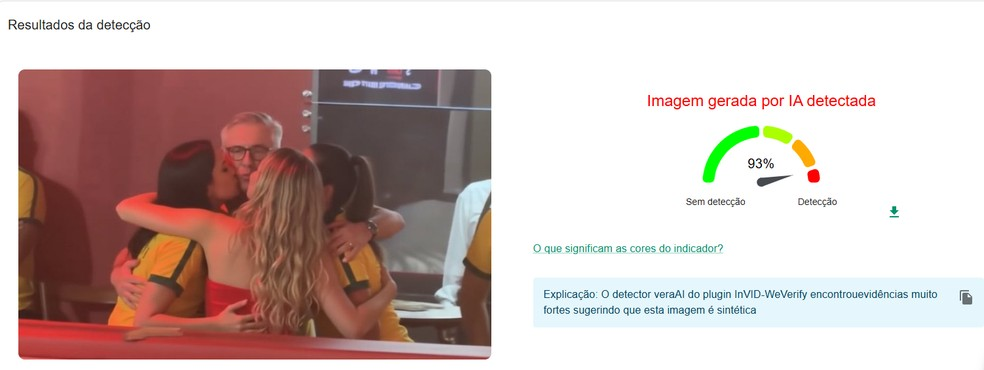이 밖에도 조작 판별 프로그램인 'MyDetector'는 AI 생성 확률을 97.73%로 분석했고, 'Sightengine'(94%)과 'InVID'(93%) 역시 해당 사진이 AI로 만들어졌을 가능성이 매우 높다고 진단했다.