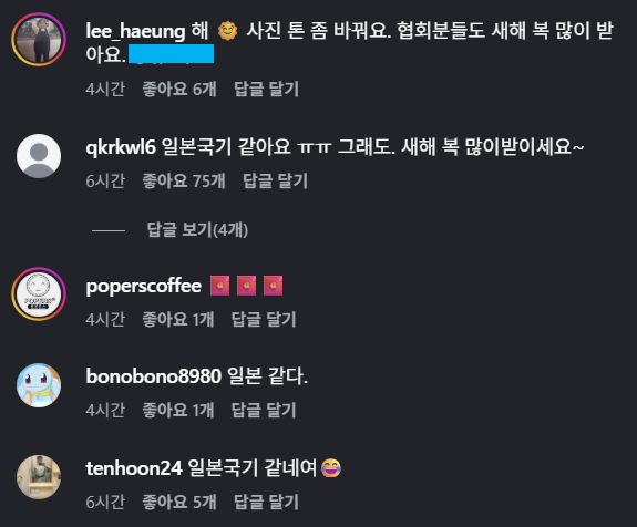 물론 "일본 국기 같아 보이는 거 같아도 아닌 거 아는데 왜 댓글에는 표현을 하는 건지 신기하네"라는 반박 주장도 나왔다.