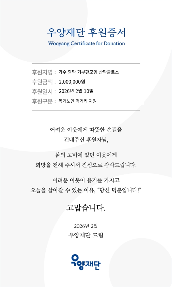 이번 기부는 명절 기간 상대적으로 돌봄이 부족해지기 쉬운 독거 어르신의 식생활을 지원하기 위해 마련됐다. 전달은 취약계층 먹거리 지원 활동을 해온 우양재단과 협력해 진행됐다.