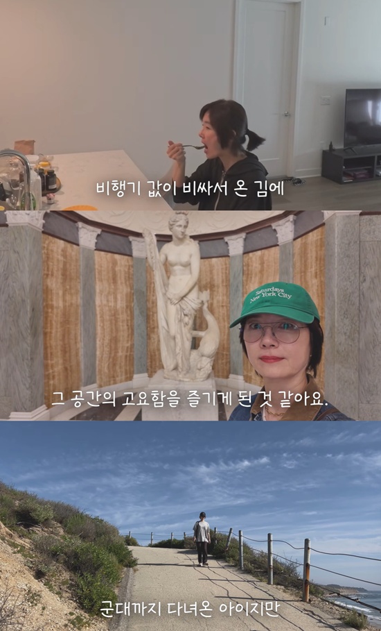 오연수는 미국에서 유학 중인 아들의 건강이 걱정돼 미국행을 택한 바 있다. 이날 오연수는 자막을 통해 "비행기 값이 비싸서 온 김에 한 달은 있을 예정으로 왔다"며 관광객 모드로 미국 구경을 같이 하자고 했다.