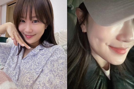 김지민은 함께 올린 사진으로 보조개처럼 들어간 볼 모양을 공개했다.