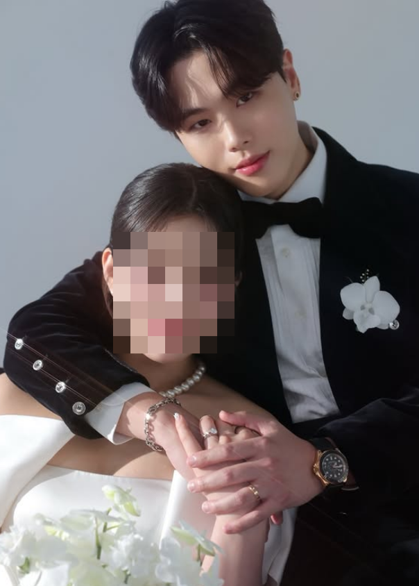 사진 속 영제이는 블랙 턱시도를 입고 단정한 새신랑 자태를 드러냈다. 예비신부는 오프숄더 드레스와 블랙 드레스를 소화하며 우아한 분위기를 자아냈다.