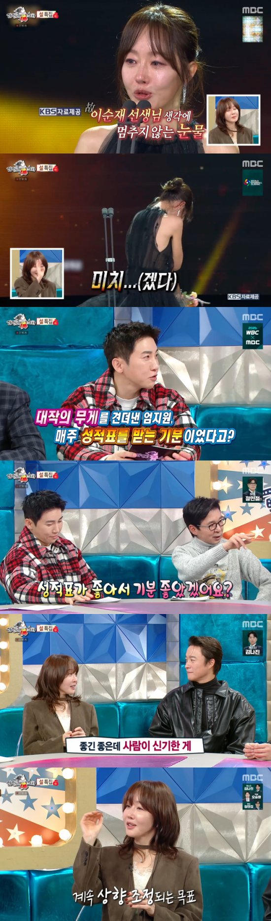 이날 방송에서 엄지원은 '독수리 5형제를 부탁해!'로 연기 대상을 받았던 것을 떠올리면서 "수상 발표 전에 故이순재 선생님을 추모하는 헌정 영상이 나왔다"고 말했다.