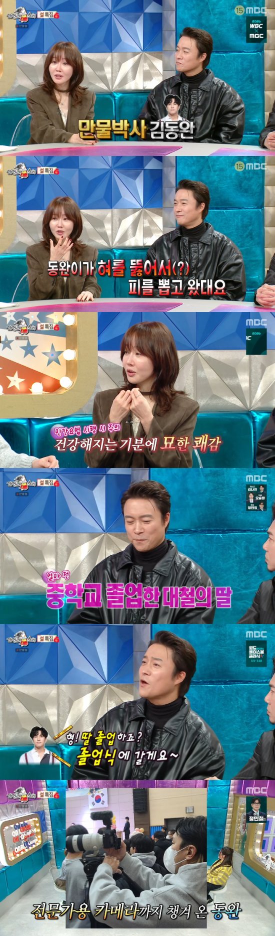 최대철도 김동완과의 에피소드를 떠올렸다. 최대철은 "얼마 전에 제 딸이 중학교를 졸업했다. 그 때가 '독수리 5형제를 부탁해!' 촬영 초반이었다. 동완이가 제 딸의 졸업식에 온다고 하는거다"라고 말했다.