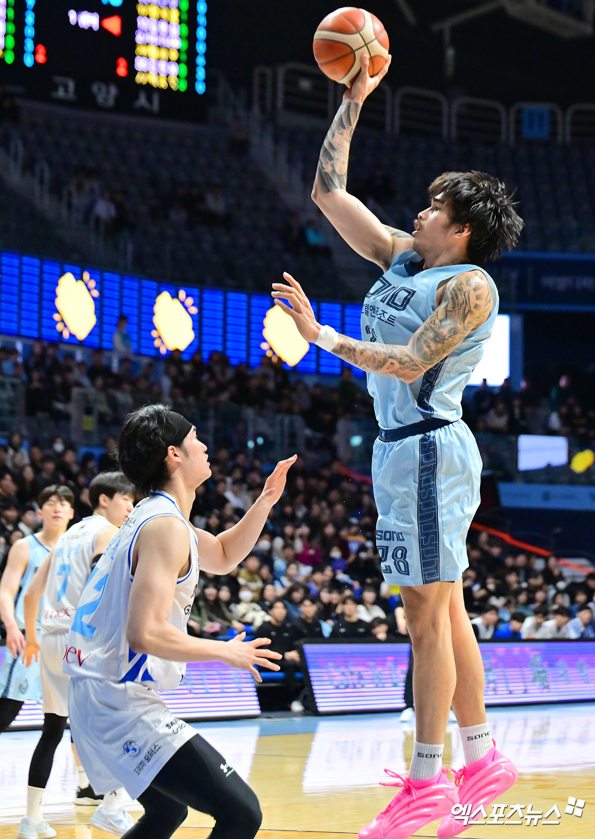 (엑스포츠뉴스 고양, 김한준 기자) 19일 오후 고양 소노아레나에서 열린 2025-2026 LG전자 프로농구 고양 소노와 서울 삼성의 경기, 소노 켐바오가 공격을 시도하고 있다.