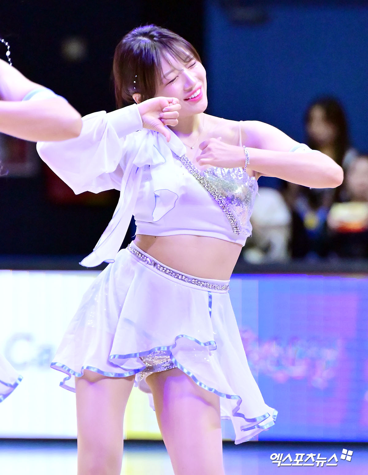 (엑스포츠뉴스 고양, 김한준 기자) 19일 오후 고양 소노아레나에서 열린 2025-2026 LG전자 프로농구 고양 소노와 서울 삼성의 경기, 박소영 치어리더가 멋진 공연을 선보이고 있다.