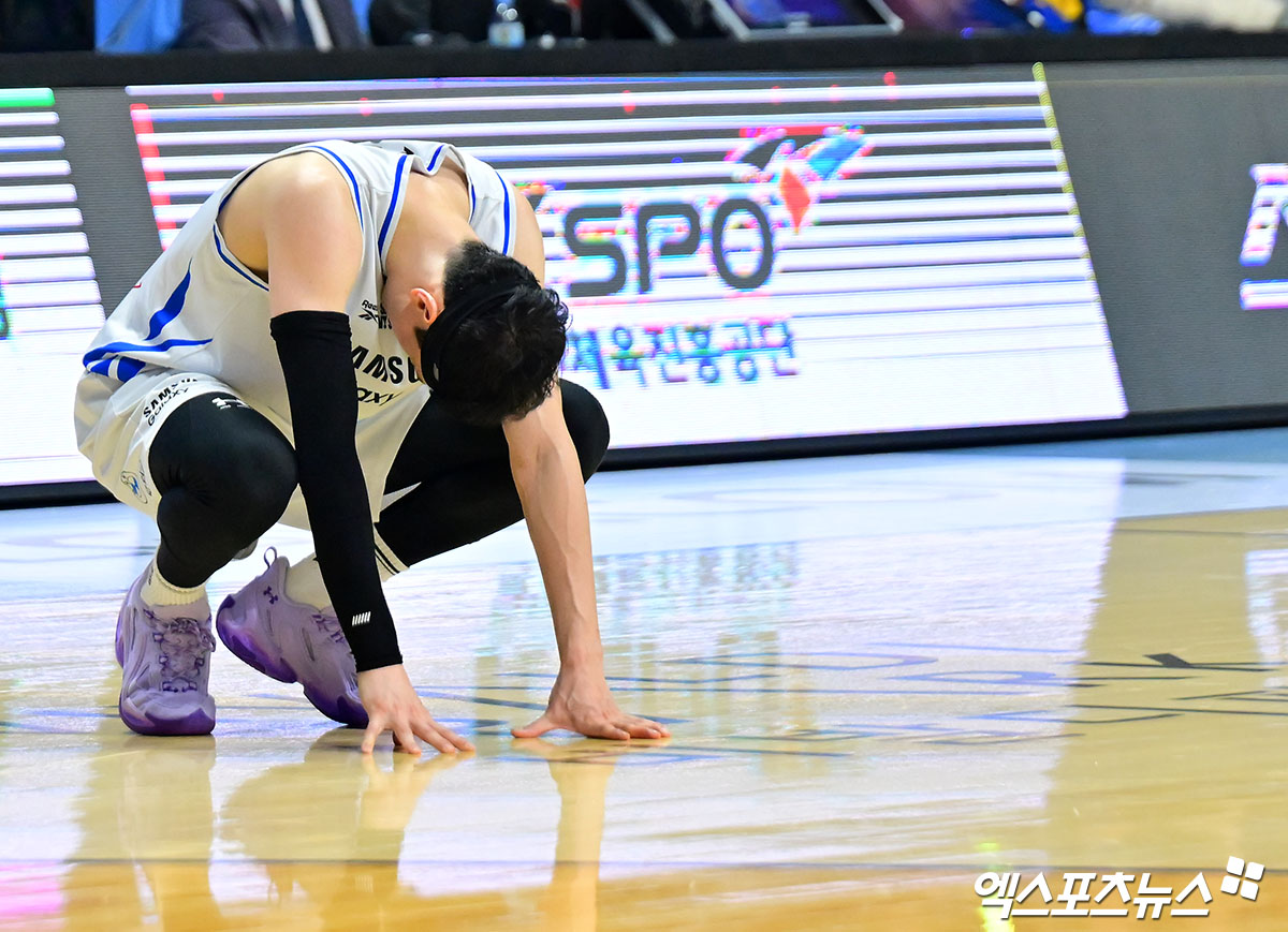 (엑스포츠뉴스 고양, 김한준 기자) 19일 오후 고양 소노아레나에서 열린 2025-2026 LG전자 프로농구 고양 소노와 서울 삼성의 경기, 삼성 이관희가 아쉬워하고 있다.