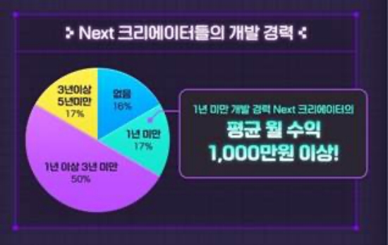 크리에이터가 지난 한 해 동안 벌어들인 연간 수익은 총 502억 원이다. 이는 전년(222억 원) 대비 약 234% 증가한 수치다. 수익을 창출한 크리에이터 수는 1만 팀을 돌파했으며, 전년 대비 5배 이상 늘어났다. 이 중 연간 수익 1억 원을 넘어선 크리에이터는 12팀에 달한다.