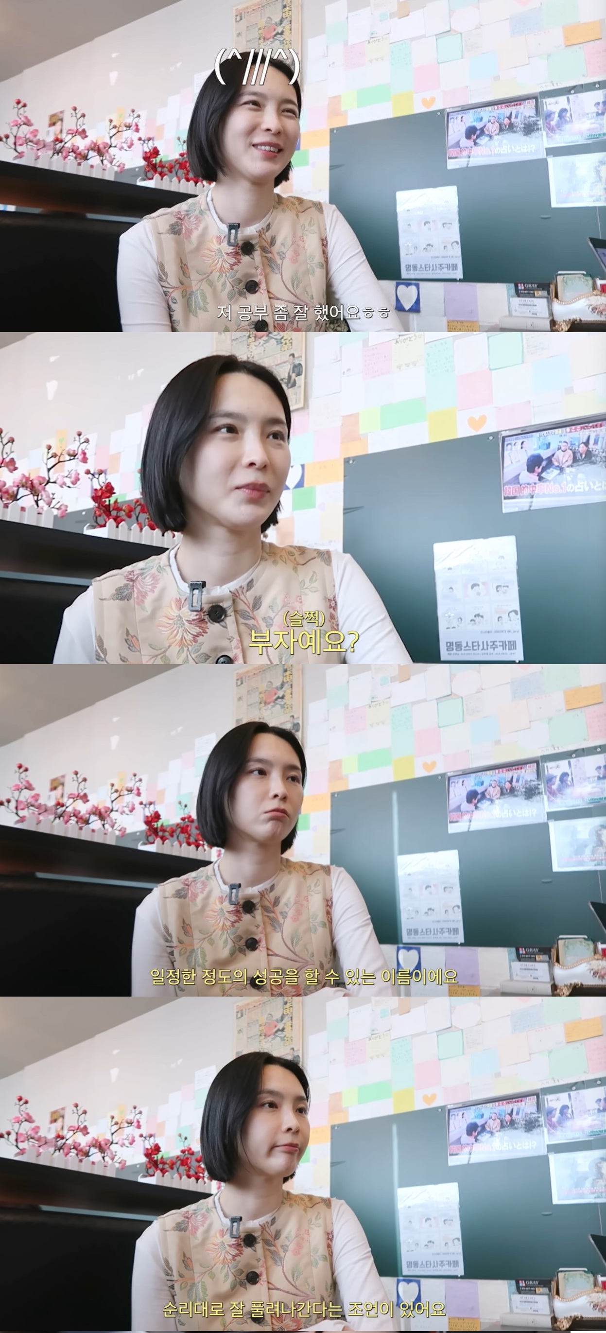 역술가는 "진짜 30살도 안 되어 보인다"며 "최상의 이름이다. 출세를 해서 성공해서 내 이름을 빨리 알린다. 사업이든 어느 분야에서 일정한 정도의 성공할 수 있는 이름이고 순리대로 잘 풀려나간다는 이름이다"라며 이름을 풀이해 눈길을 끌었다.