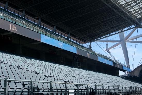 리본 전광판은 총 5개로 구성돼 동·서·남측 스탠드에 설치됐으며, 모든 전광판의 높이를 1,280mm로 통일해 경기장 전체를 하나의 리본처럼 감싸는 시각적 효과를 구현했다.