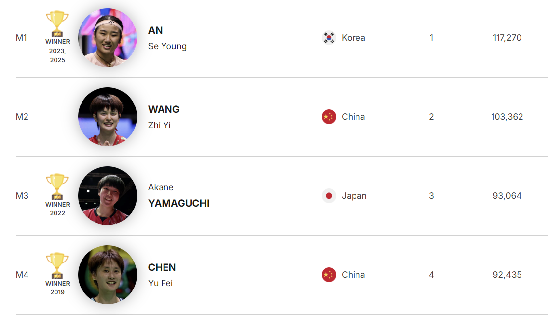 현재 왕즈이가 안세영에 밀려 계속 우승하지 못한 가운데, 왕즈이와 천위페이, 돌아온 야마구치까지 안세영의 우승을 견제하려는 시도를 이어갈 것으로 보인다.