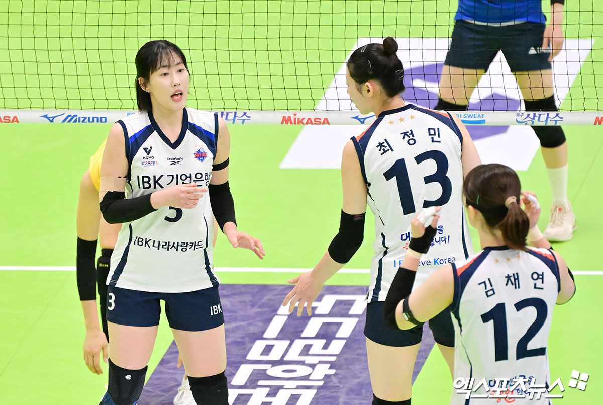 (엑스포츠뉴스 수원, 김한준 기자) 21일 오후 경기도 수원실내체육관에서 열린 '진에어 2025-2026 V-리그' 현대건설과 기업은행의 경기, 기업은행 박은서가 사인을 내고 있다.