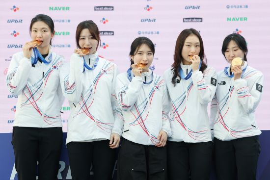 최민정, 김길리(이상 성남시청), 노도희(화성시청), 심석희(서울시청), 이소연(스포츠토트)로 구성된 한국 쇼트트랙 여자 대표팀은 21일(한국시간) 이탈리아 밀라노 코리아하우스에서 열린 기자회견에 참석했다.