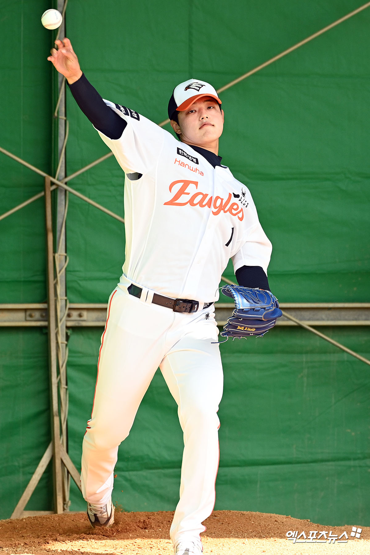 (엑스포츠뉴스 오키나와(일본), 고아라 기자) 21일 일본 오키나와 고친다 구장에서 진행된 한화 이글스 2차 스프링캠프, 한화 문동주가 불펜 피칭을 하고 있다.