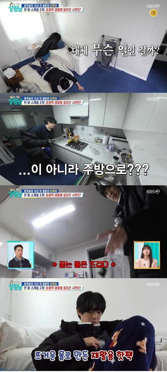 21일 방송된 KBS 2TV '살림하는 남자들 시즌2'에서는 타쿠야가 초절약 생활을 하는 모습이 전파를 탔다.