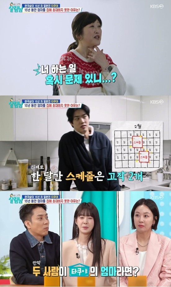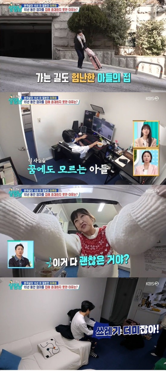 타쿠야 어머니는 아들 집으로 들어서자마자 "왜 이렇게 어두운 거냐", "청소는 하는 거니?", "먹은 건 좀 치워라"라고 잔소리를 쏟아냈다.